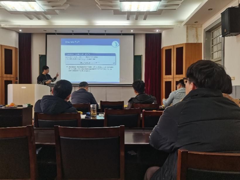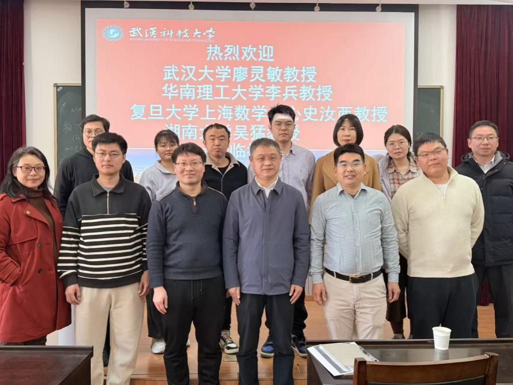 受公司邀请,华南理工大学李兵教授、武汉大学廖灵敏教授、复旦大学上海数学中心史汝西教授和湖南大学吴猛教授于12月28日上午9:00来院作学术报告。本次“分形几何与动力系统系列报告会”由经理丁义明教授主持,武汉大学、武汉理工大学、湖北大学、广东第二师范公司等高校的相关领域专家,以及本院相关方向教师与研究生参加了此次学术活动。