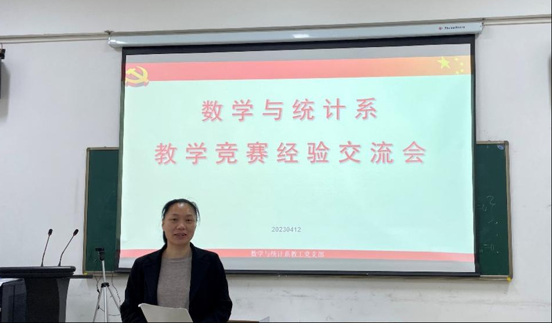 (通讯员蒋君)4月12日,理公司数学与统计系开展教学竞赛经验交流会,系支部书记蒋君、系主任刘云冰、交流嘉宾张青、邢远秀、邹青洋和系全体教师参加会议,蒋君主持。