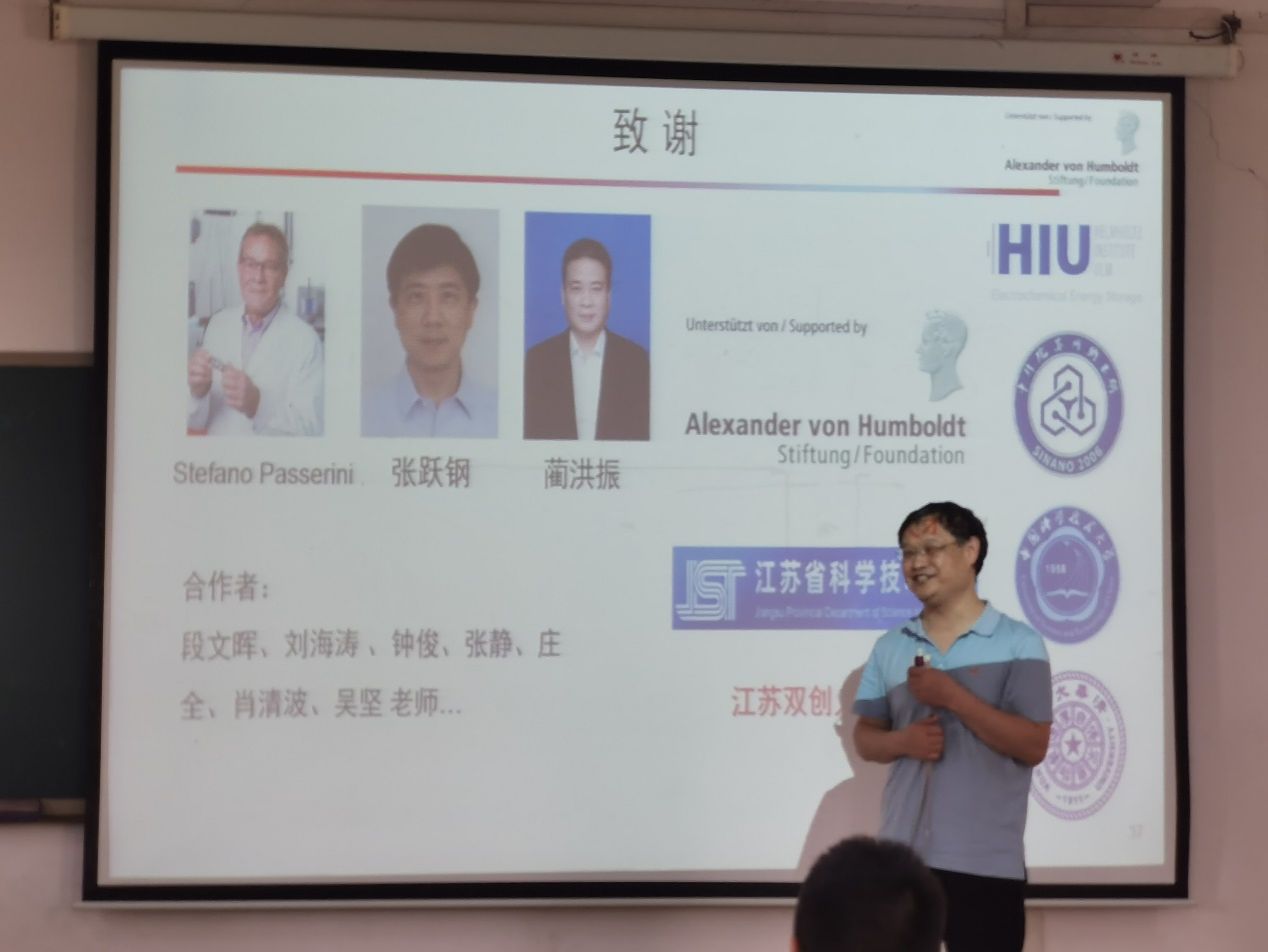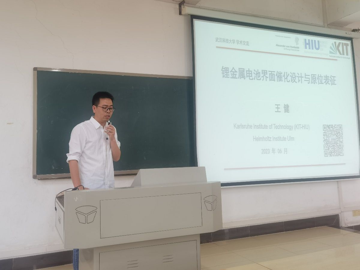 (通讯员朱思聪)6月12日上午, “洪堡学者”获得者、德国Karlsruhe Institute of Technology、Helmholtz Institute Ulm电化学研究所研究员王健博士应邀为理公司作学术报告,报告题目为“高比能锂金属电池的催化设计与原位机制表征”,报告会由应用物理系光电信息科学与工程专业教研室主任朱思聪主持。理公司经理丁义明,理公司副经理王玉华,创新创业公司副经理汪汝武等几十位师生参加了此次报告会。