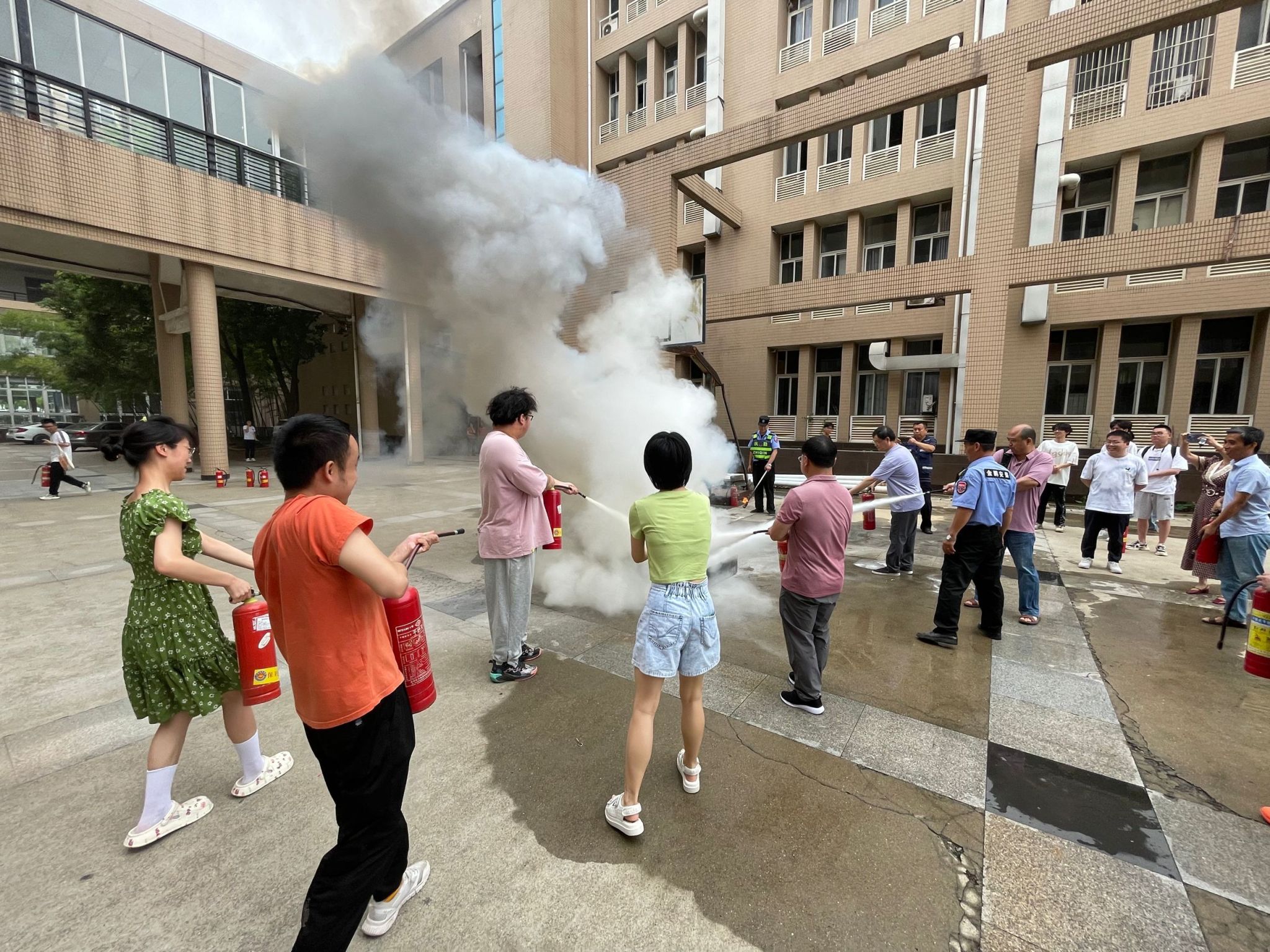 (通讯员施洁)为响应公司“校园安全检查月”和“安全生产月”的号召,提高公司师生的消防安全意识,增强火灾应对能力,6月15日,公司保卫处消防科科长段晓栋在公司楼下空旷地带为公司师生进行了消防科普及灭火器实操培训,公司党委书记刘泽喜、经理丁义明及其他师生代表一起参加了此次消防演练。