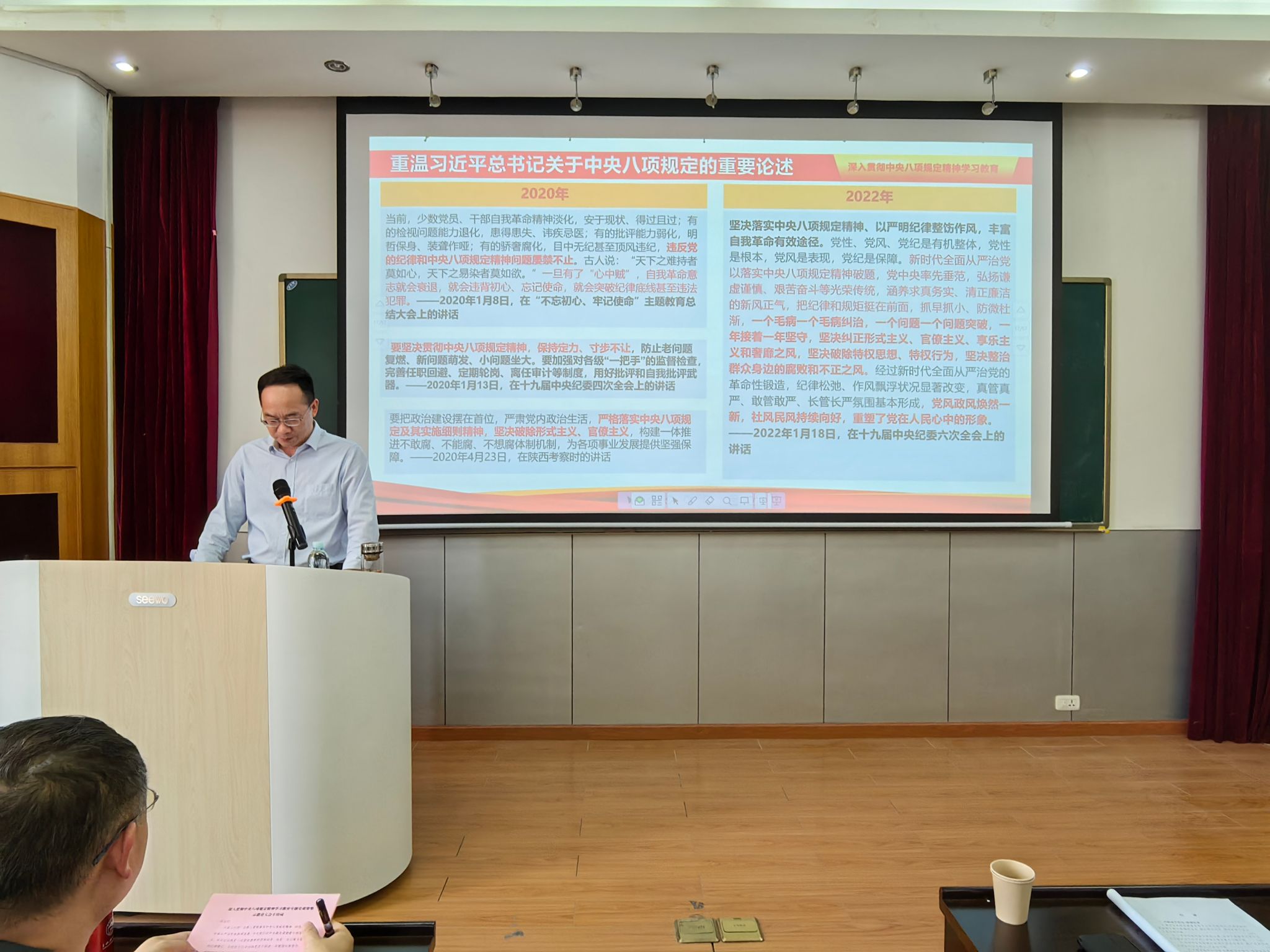 为深入贯彻中央八项规定精神学习教育,纵深推进全面从严治党,理公司于5月23日下午在22515学术报告厅召开深入贯彻中央八项规定精神学习教育专题党课暨警示教育大会,公司领导班子成员、系部主任、副主任各党支部书记、支委会成员及党员代表参加公司党委书记王文涛出席会议并讲话,公司经理丁义明主持会议。