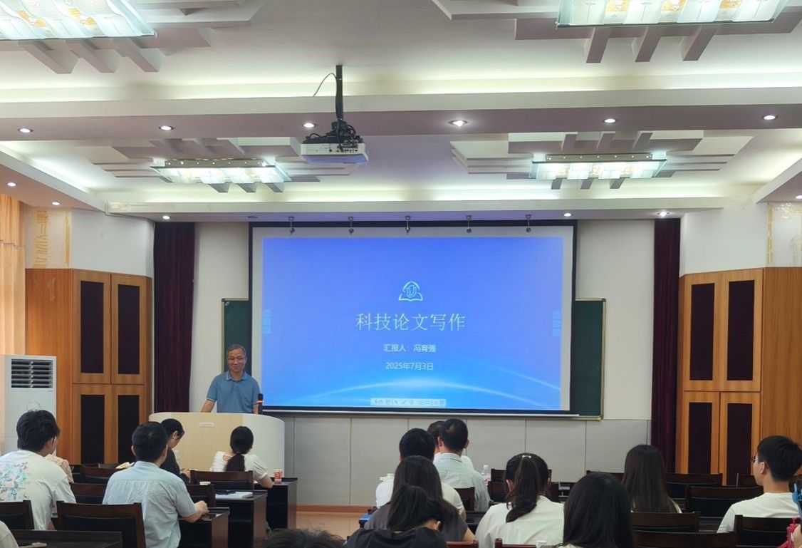 冯育强作了"科技论文写作规范与学术道德"的专题报告。他系统阐述了科技论文从选题构思到投稿发表的全流程要点,特别强调了学术道德的重要性。通过典型案例分析,冯编审提醒研究生们要杜绝学术不端行为,恪守"诚实守信、尊重他人成果、遵守学术规范"的基本原则。