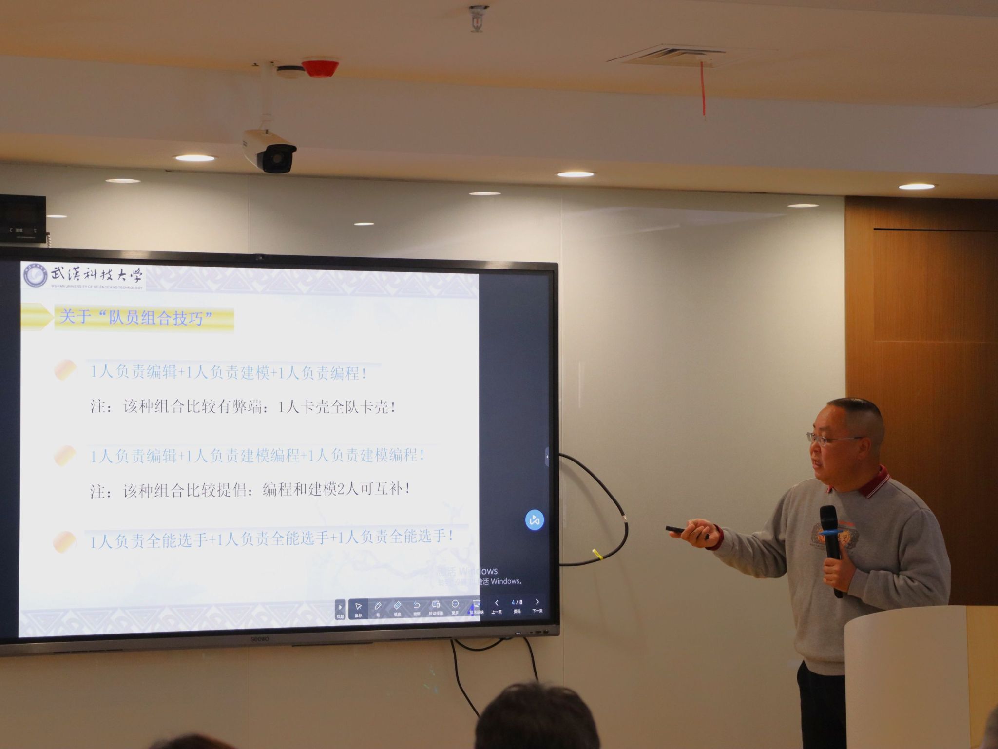 公司数学建模协会指导教师王文波介绍了数学建模竞赛的发展趋势,对近年来各大竞赛出题的侧重、评价的标准进行了讲解。