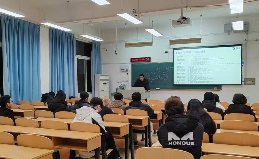 202535日晚上,理公司联合知名考研机构研途教育举办“2025考研复试通关计划专题指导讲座。多名考研学子齐聚11108,研途望老师从复试策略、科研素养展示到职业发展规划为同学们进行考研复试讲解。