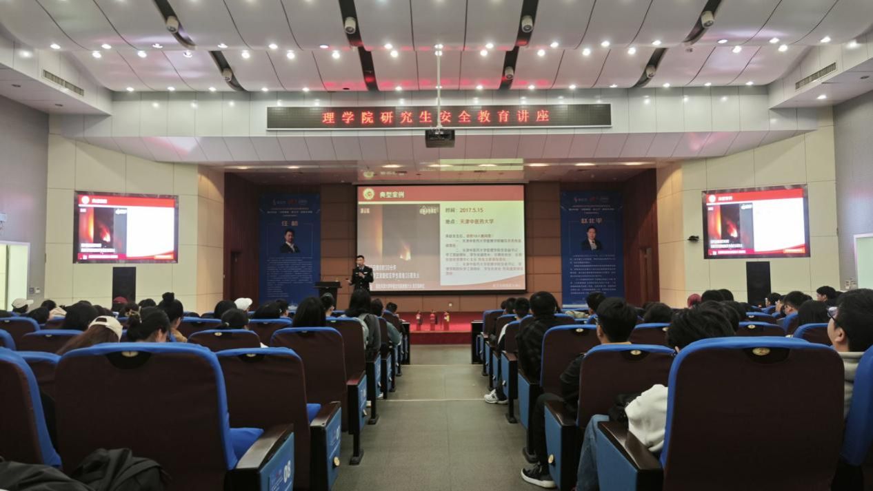 周炳杰通过视频展示了一些鲜活的火灾案例,以引起同学们对消防安全的重视。“我们身边存在许多安全隐患,实验室和宿舍发生的火灾占比很高,危化品、气瓶、电器的不规范操作和使用都可能引发爆燃。”他强调道,“不按注意事项操作实验,不按规范管理危化品和气瓶,违规使用大功率电器,乱接电源,乱扔烟头,电气设备旁存放易燃物品,人走不断电等行为,随时可能给我们带来难以挽回的损失。”