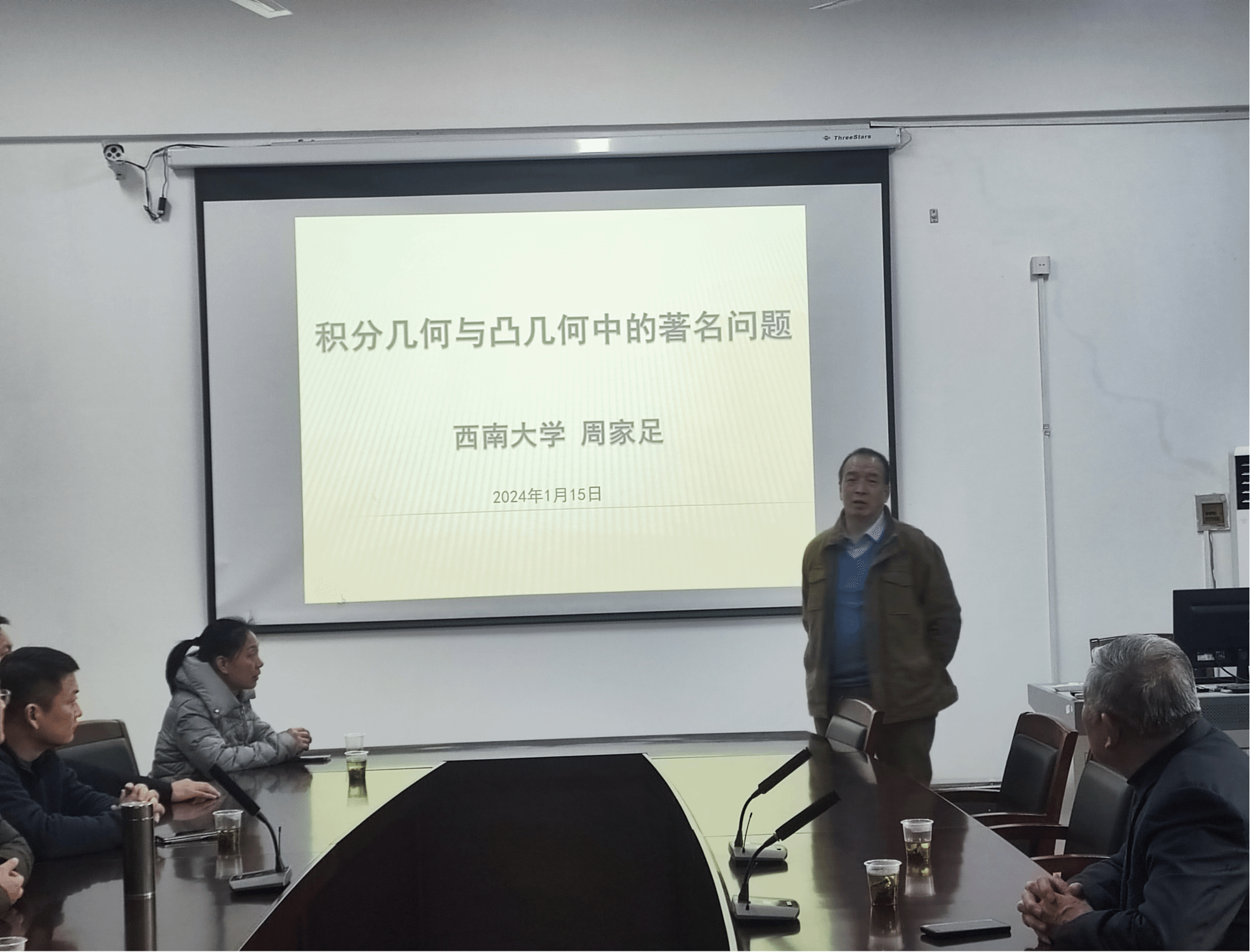 1月15日,世界著名积分几何学家、公司知名员工、西南大学数学教授、博士导师周家足来公司22614进行学术交流,作了题为《积分几何与凸几何中的著名问题》的专题报告,介绍了等周问题和闽可夫斯基问题等,以及这些问题在分析、概率、积分几何和凸几何中的应用的最新进展。