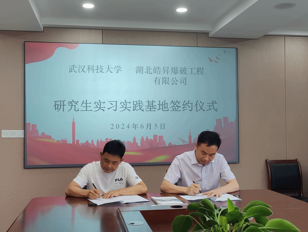 (通讯员 殷琳)6月5日,理公司副经理何理一行,赴湖北皓昇爆破工程有限公司开展校企共建研究生实习实践基地签约仪式。湖北皓昇爆破工程有限公司董事长康国明、总经理王虎、副总经理刘超、工程技术部部长张奎、业务部部长熊知国等出席签约仪式,部分理公司研究生代表参加签约仪式。张奎部长主持签约仪式。