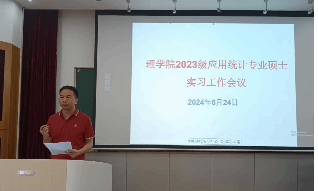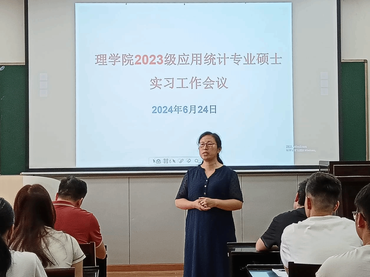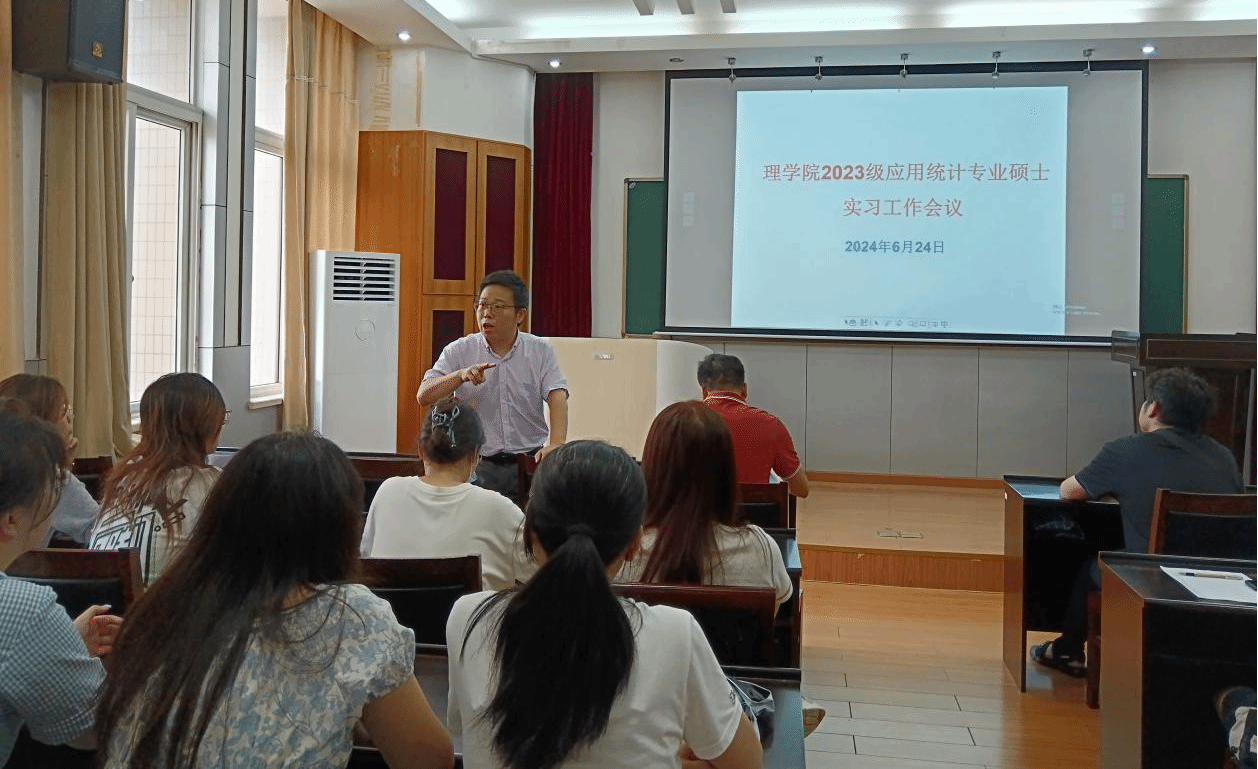 624日上午,理公司2023级应用统计专业硕士实习工作会议教二22515举行。理公司经理何理、数学与统计系领导班子、导师代表和全体2023应用统计专业硕士研究生参加了会议,本次会议由数学与统计系副主任何晓霞主持。